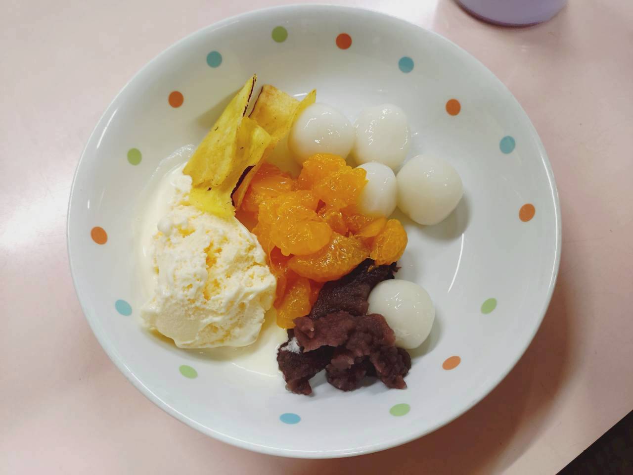 バニラアイスとミカンとあんこを添えて召し上がれ♪
